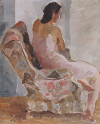 Adrienne Le Clerc Seated in Floral Chairmid 1930s