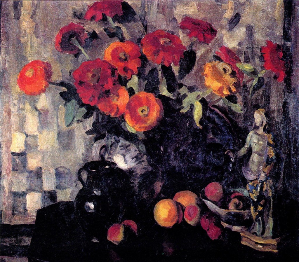 Zinnias and Fruit with Madonna192830 x 35 inches