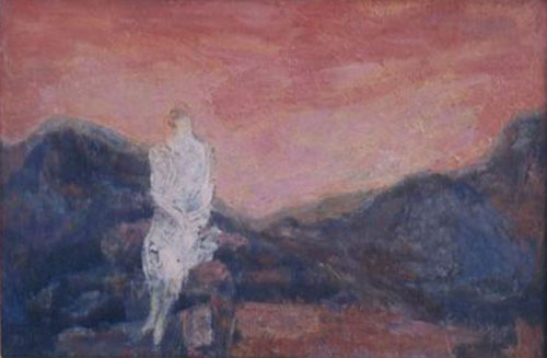 Figure in Desert Sunset Signature Estate-stamped lower right Oil on board12 x 19 inches