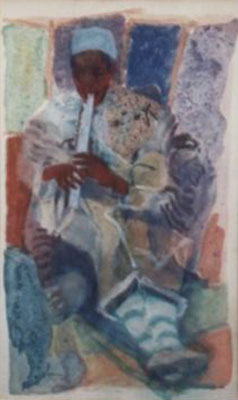 The Snake Charmer1956 Signed lower left Watercolor on paper 30 x 22 inches