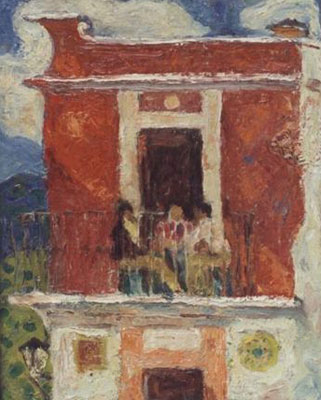 Three Figures on a Balcony, Taxco, Mexico1955Oil on board20 x 16 inches